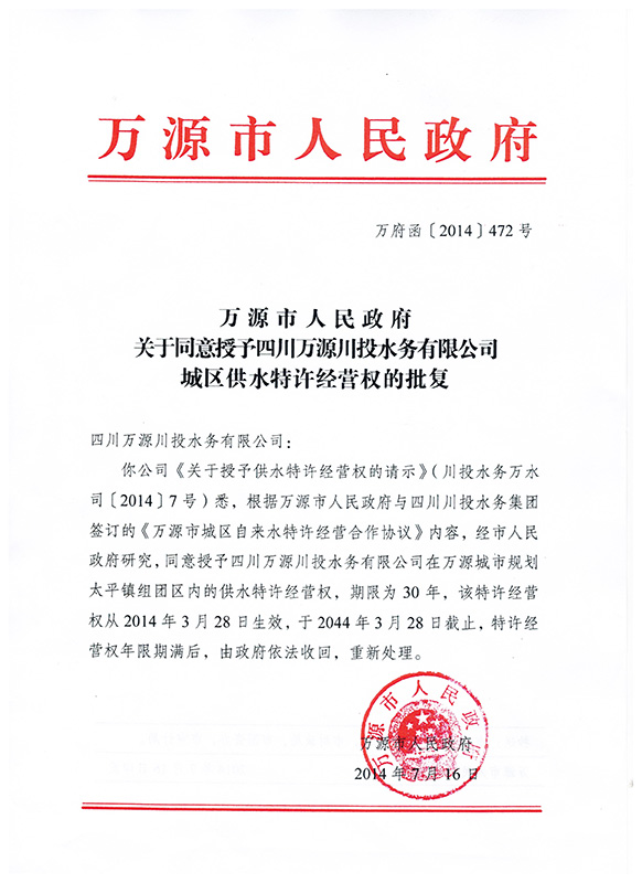 萬源水司安全標(biāo)準(zhǔn)化證書