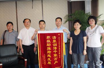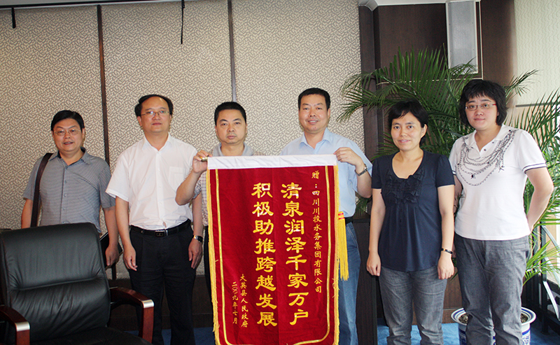 大英縣人民政府原縣長雷云向川投水務贈送錦旗