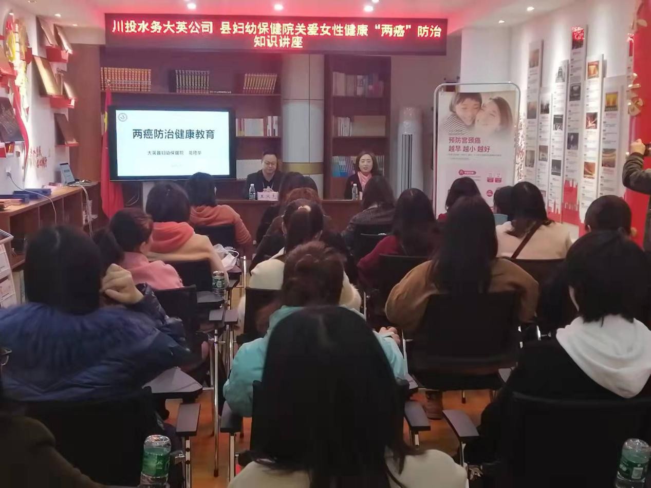 為切實維護廣大女性同胞的身心健康,提高全體女干部職工的健康保健意識。在“三八”國際勞動婦女節(jié)來臨之際,3月4日上午,川投水務大英公司黨支部、工會與大英縣婦幼保健院聯(lián)合舉辦關愛女性健康“兩癌”防治知識健康講座主題活動。公司全體女黨員干部職工參加,大英縣婦幼保健院院長龍艷華主講,川投水務大英公司副總經(jīng)理、工會主席王洪先同志受公司黨支部書記、總經(jīng)理王文川同志委托出席并主持講座。