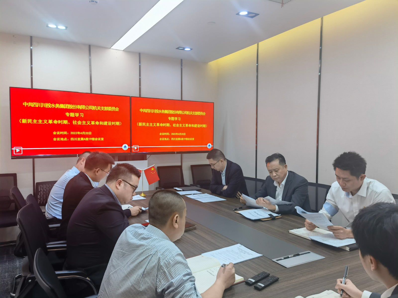 2022年4月20日,為進一步深入推進開展黨史學(xué)習(xí)教育工作,繼續(xù)教育引導(dǎo)廣大黨員干部切實做到學(xué)懂弄通、學(xué)有所為,川投水務(wù)集團機關(guān)支部認真組織召開了“新民主主義革命時期”“社會主義革命建設(shè)時期”專題學(xué)習(xí)會,專題學(xué)習(xí)會由機關(guān)黨支部書記嚴斯亮主持。