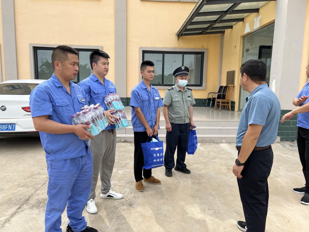 由公司黨支部書記、董事長、總經(jīng)理朱禹,常務(wù)副總經(jīng)理秦榮,副總經(jīng)理黃貞明、莫國兵分別組成兩支防暑降溫慰問小組到公司六個污水處理廠、三個供水廠,為堅(jiān)守在一線的職工送去蘇打水、十滴水、藿香正氣液等防暑降溫物品,向在酷暑炎炎烈日中保供保排的職工們表示誠摯的感謝,并叮囑大家在保證工作的同時,要時刻注意防暑降溫,確保高溫天氣下自身的健康和作業(yè)的安全。