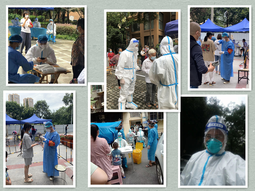 “各司其職、定格堅守”“請有序排隊、老年人請這邊先做”“大爺、大媽,我來幫您掃碼”“來小朋友,嘴巴張大,??!”“大白”“小藍”志愿者們各司其職,引導(dǎo)著居民們排隊掃碼核酸采樣,醫(yī)護人員們也有條不紊地為居民進行核酸采樣?!耙还芄懿蓸釉噭?、一滴滴艱辛汗水、一條條臉龐勒痕”他們沒有喊苦喊累,依然用心用情地為居民們服務(wù)。