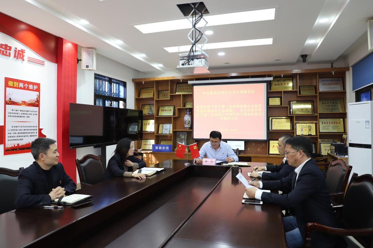 11月9日上午,榮縣水司支部召開省國資委《關(guān)于進一步加強省屬企業(yè)基層黨組織建設(shè)的十條措施》、四川發(fā)展黨委《關(guān)于進一步加強公司領(lǐng)導(dǎo)班子建設(shè)的意見》專題學(xué)習(xí)會。公司支部書記、執(zhí)行董事、總經(jīng)理龔慶主持會議,4名支部委員參加會議。