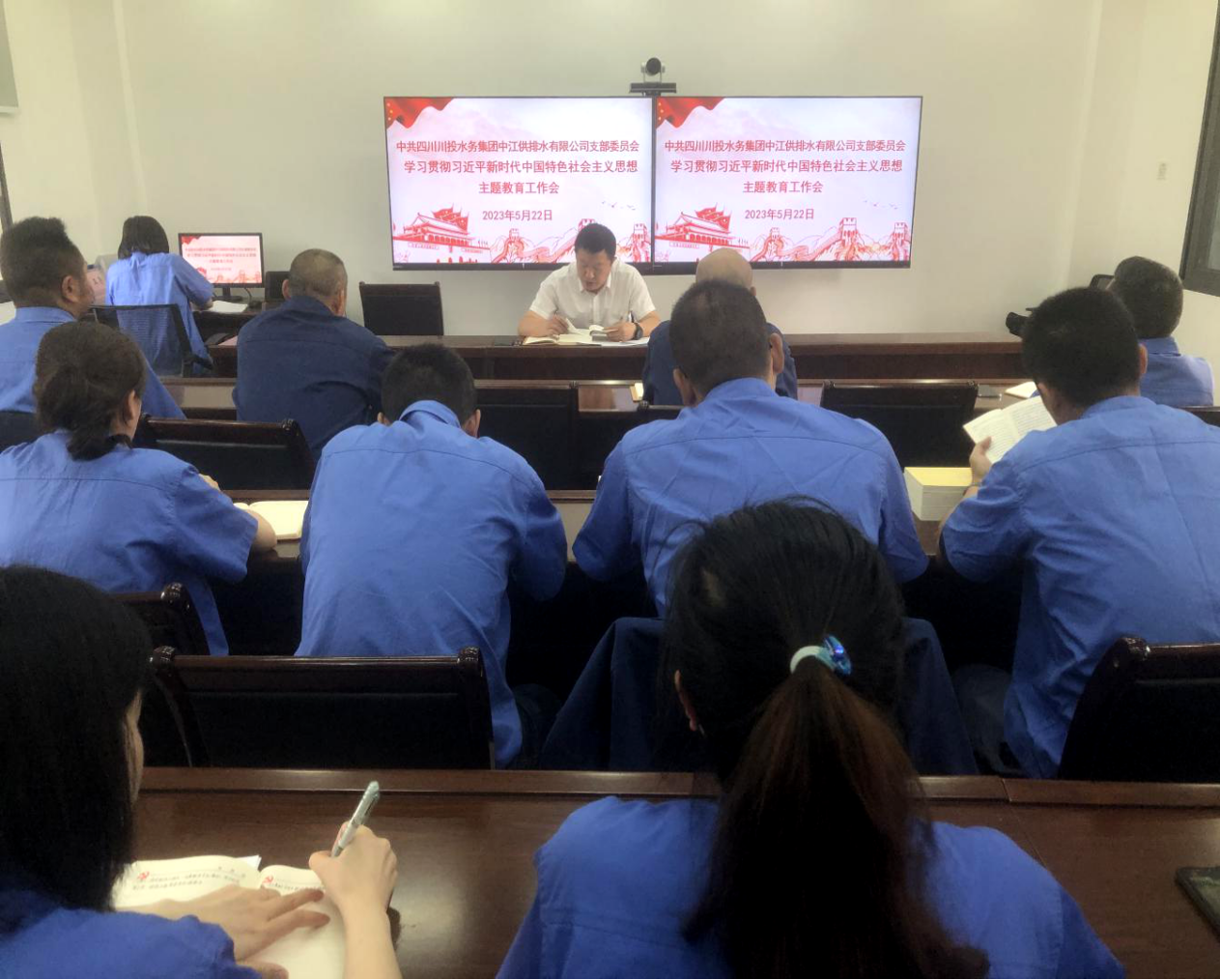 5月22日,中江水司組織召開(kāi)學(xué)習(xí)貫徹習(xí)近平新時(shí)代中國(guó)特色社會(huì)主義思想主題教育工作會(huì),認(rèn)真貫徹落實(shí)黨中央、省委、省國(guó)資委黨委、四川發(fā)展黨委、四川省生態(tài)環(huán)保集團(tuán)黨委以及川投水務(wù)集團(tuán)黨委有關(guān)主題教育的決策部署,并對(duì)公司開(kāi)展主題教育進(jìn)行安排部署。會(huì)議由黨支部書(shū)記朱禹主持,支部黨員、入黨積極分子、公司中層及以上管理人員參加。