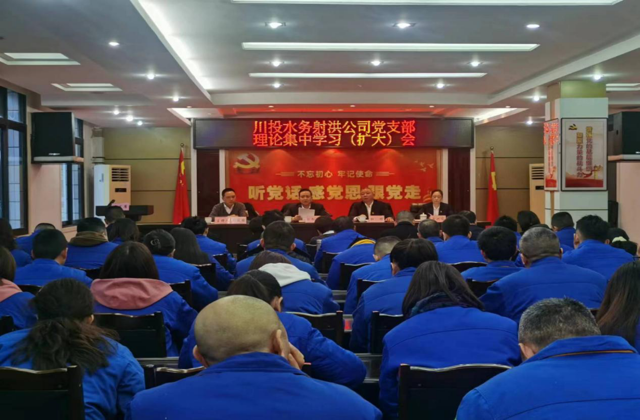 2月4日,射洪公司黨支部召開理論集中學(xué)習(xí)(擴(kuò)大)會(huì)議,傳達(dá)學(xué)習(xí)四川省“兩會(huì)”精神、四川省委第十二屆紀(jì)律檢查委員會(huì)第三次全體會(huì)議公報(bào)以及省安全工作有關(guān)會(huì)議精神、川發(fā)展黨委理論學(xué)習(xí)中心組會(huì)議精神,射洪水司黨支部書記、董事長(zhǎng)、總經(jīng)理劉松果主持會(huì)議,公司領(lǐng)導(dǎo)班子成員、中層管理人員以及全體黨員同志參加會(huì)議。