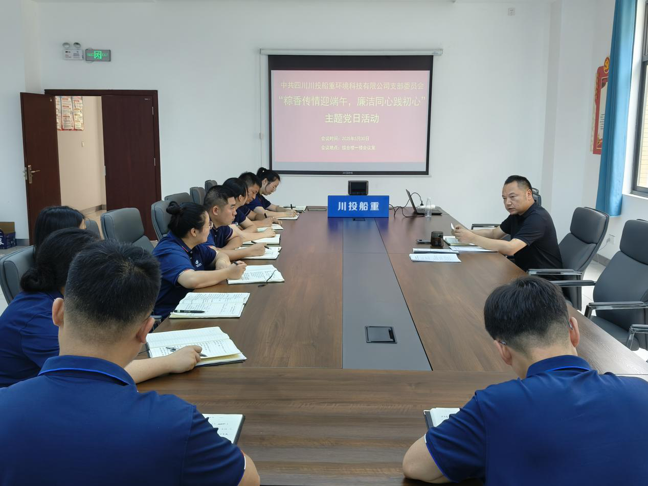 2025年5月30日上午,川投船重公司黨支部組織開(kāi)展“粽香傳情迎端午,廉潔同心踐初心”主題黨日活動(dòng),推動(dòng)清廉文化入腦入心。