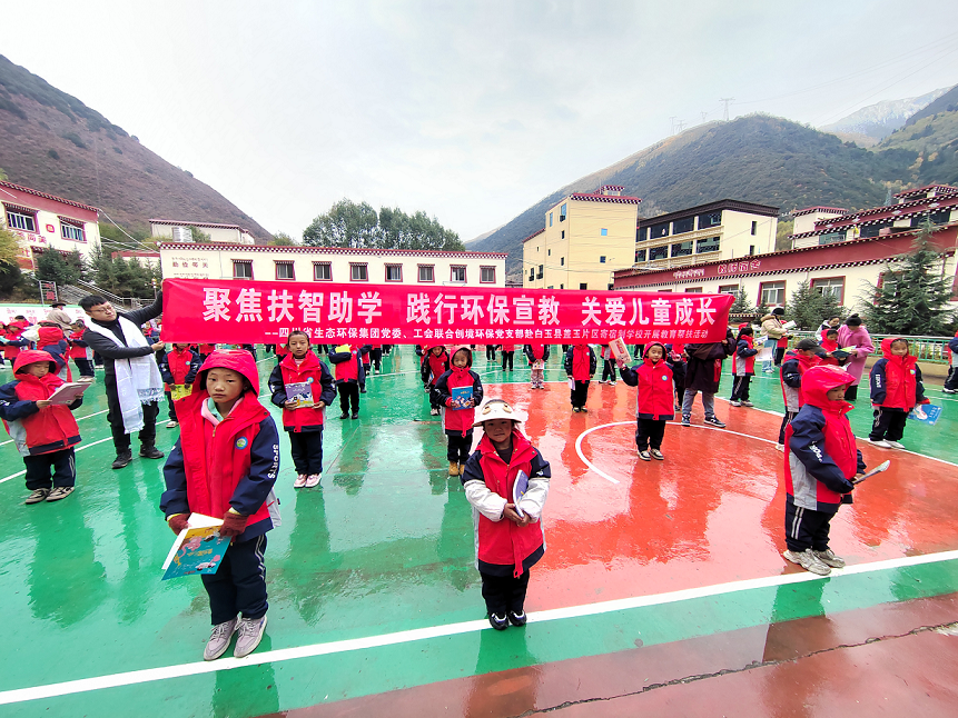在助力產(chǎn)業(yè)發(fā)展的同時(shí),工作小組專(zhuān)程前往白玉縣蓋玉片區(qū)寄宿制學(xué)校開(kāi)展教育幫扶,捐贈(zèng)書(shū)包、筆記本等學(xué)習(xí)用品2000余件,緩解學(xué)生用品短缺困境。工作小組還圍繞“生物多樣性” 開(kāi)展特色宣講,設(shè)置環(huán)保小知識(shí)互動(dòng)環(huán)節(jié),幫助學(xué)生樹(shù)立生態(tài)保護(hù)理念;課后與學(xué)校教師交流,了解學(xué)生學(xué)習(xí)生活及教學(xué)需求,為后續(xù)長(zhǎng)期教育幫扶積累了第一手資料。