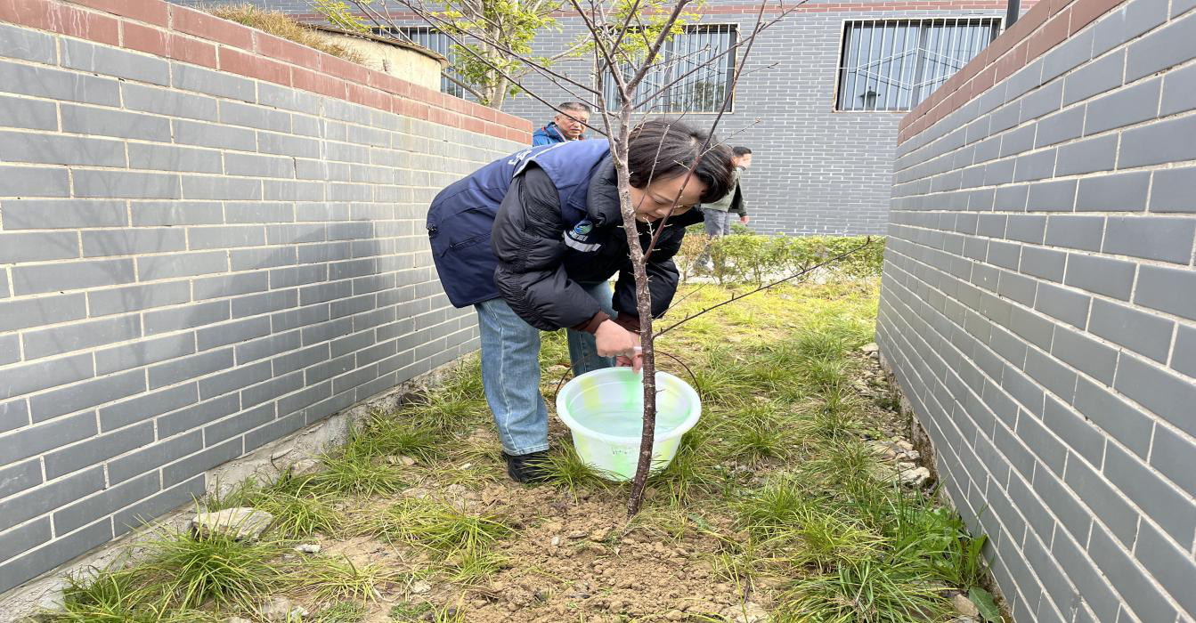 活動當(dāng)天,陽光明媚,春風(fēng)拂面,參加活動人員熱情高漲,干勁十足,大家密切配合,挖坑、鏟土、扶苗、培土、澆水,齊心協(xié)力讓一棵棵新栽種的樹苗在和煦的春風(fēng)中煥發(fā)出勃勃生機,為馱山水廠增添了一抹新綠。