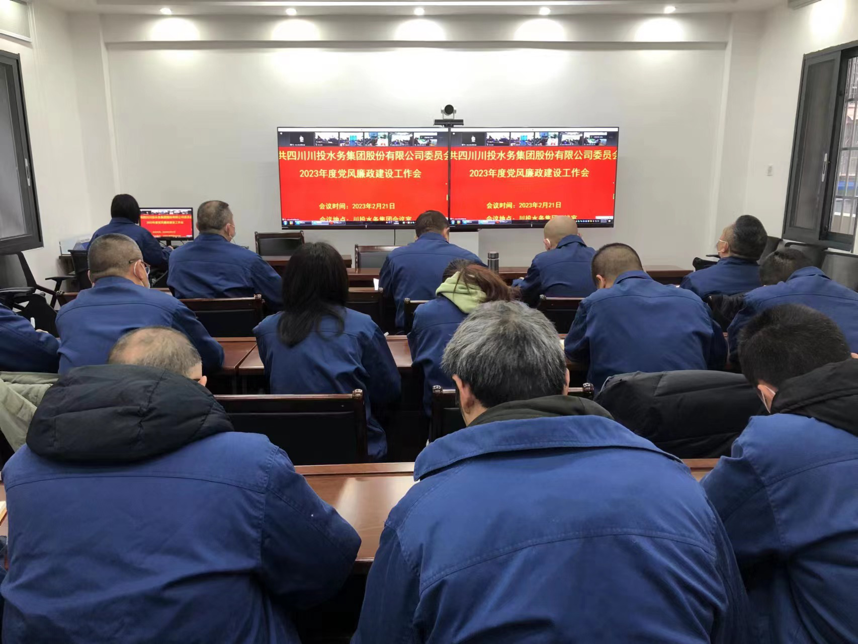 2023年2月21日上午10點,為深入貫徹落實黨的二十大精神,堅決貫徹二十屆中央紀(jì)委二次全會、省紀(jì)委十二屆二次全會精神,聚焦四川發(fā)展、四川省生態(tài)環(huán)保集團(tuán)2023年度黨風(fēng)廉政建設(shè)工作部署,川投水務(wù)集團(tuán)黨委組織召開2023年度黨風(fēng)廉政建設(shè)工作會,會議由川投水務(wù)集團(tuán)黨委委員、副總經(jīng)理嚴(yán)斯亮主持。公司本部領(lǐng)導(dǎo)班子成員、各部門負(fù)責(zé)人、全體員工、各所屬公司領(lǐng)導(dǎo)班子成員及中層管理人員通過視頻+現(xiàn)場形式參會。