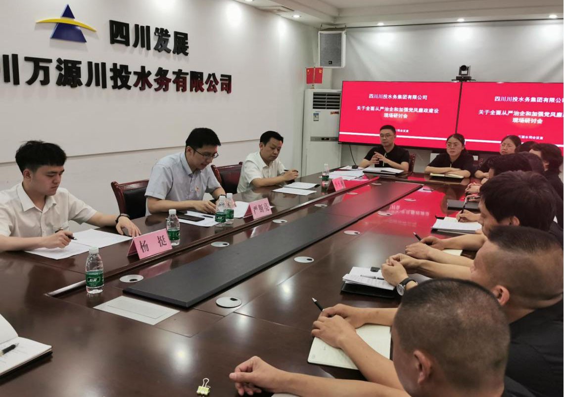 6月14日,為深度了解掌握廣大黨員干部職工對萬源水司加強全面從嚴治企和加強黨風(fēng)廉政建設(shè)的意見和建議,川投水務(wù)集團黨委委員、副總經(jīng)理嚴斯亮同志帶領(lǐng)調(diào)研小組赴萬源水司開展“全面從嚴治企和加強黨風(fēng)廉政建設(shè)”現(xiàn)場專題調(diào)研會。萬源水司黨員干部、各部門員工代表共計25人參加會議。