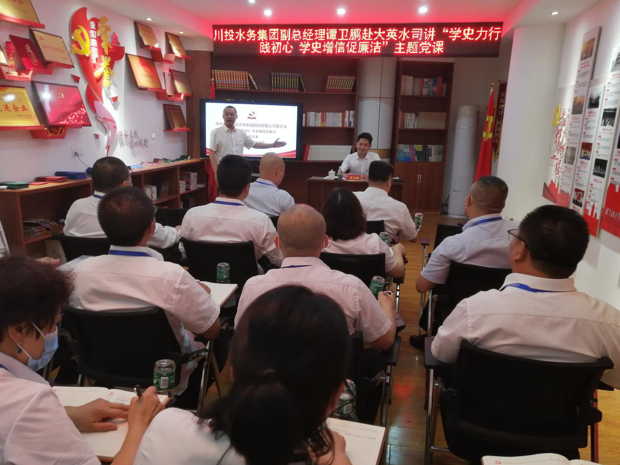 4月24日,為深化黨風(fēng)建設(shè),加強(qiáng)廉政建設(shè),堅(jiān)守黨風(fēng)建設(shè)底線,弘揚(yáng)清風(fēng)正氣,川投水務(wù)集團(tuán)副總經(jīng)理譚衛(wèi)鵬、黨群紀(jì)檢工作部部長(zhǎng)李至彬等一行到大英水司黨支部講授主題黨課。川投水務(wù)大英水司黨支部書記、執(zhí)行董事、總經(jīng)理王文川,副總經(jīng)理、工會(huì)主席王洪先及全體黨員干部參會(huì)學(xué)習(xí)。
