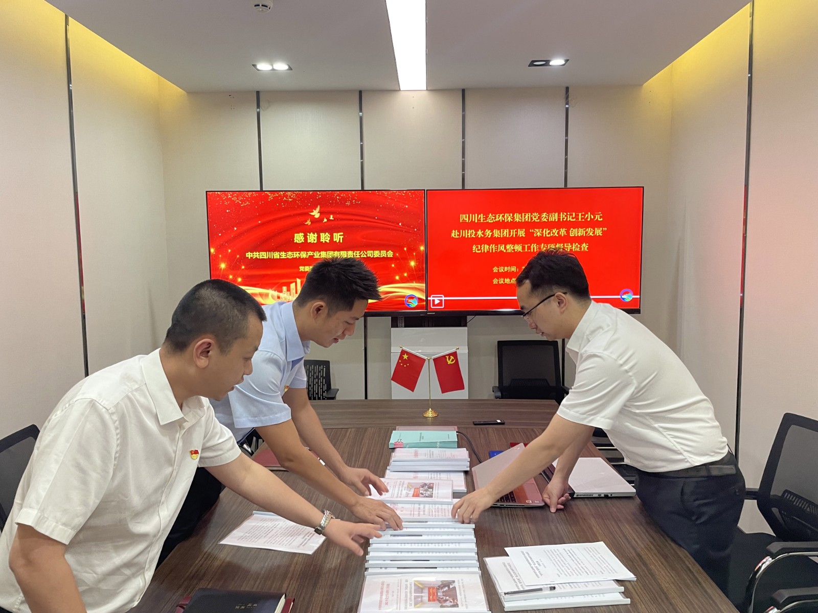 5月13日,按照四川發(fā)展黨委、四川生態(tài)環(huán)保集團(tuán)黨委“深化改革、創(chuàng)新發(fā)展”紀(jì)律作風(fēng)整頓工作總體安排,為持續(xù)推進(jìn)紀(jì)律作風(fēng)整頓工作走深走實(shí),四川生態(tài)環(huán)保集團(tuán)黨委副書記王小元赴川投水務(wù)集團(tuán)開(kāi)展“深化改革、創(chuàng)新發(fā)展”紀(jì)律作風(fēng)整頓專項(xiàng)督導(dǎo)檢查工作暨講授“轉(zhuǎn)作風(fēng) 促發(fā)展”持之以恒加強(qiáng)作風(fēng)建設(shè)專題黨課,川投水務(wù)集團(tuán)黨委委員、副總經(jīng)理嚴(yán)斯亮,副總經(jīng)理譚衛(wèi)鵬,黨群紀(jì)檢工作部部長(zhǎng)李至彬陪同檢查。