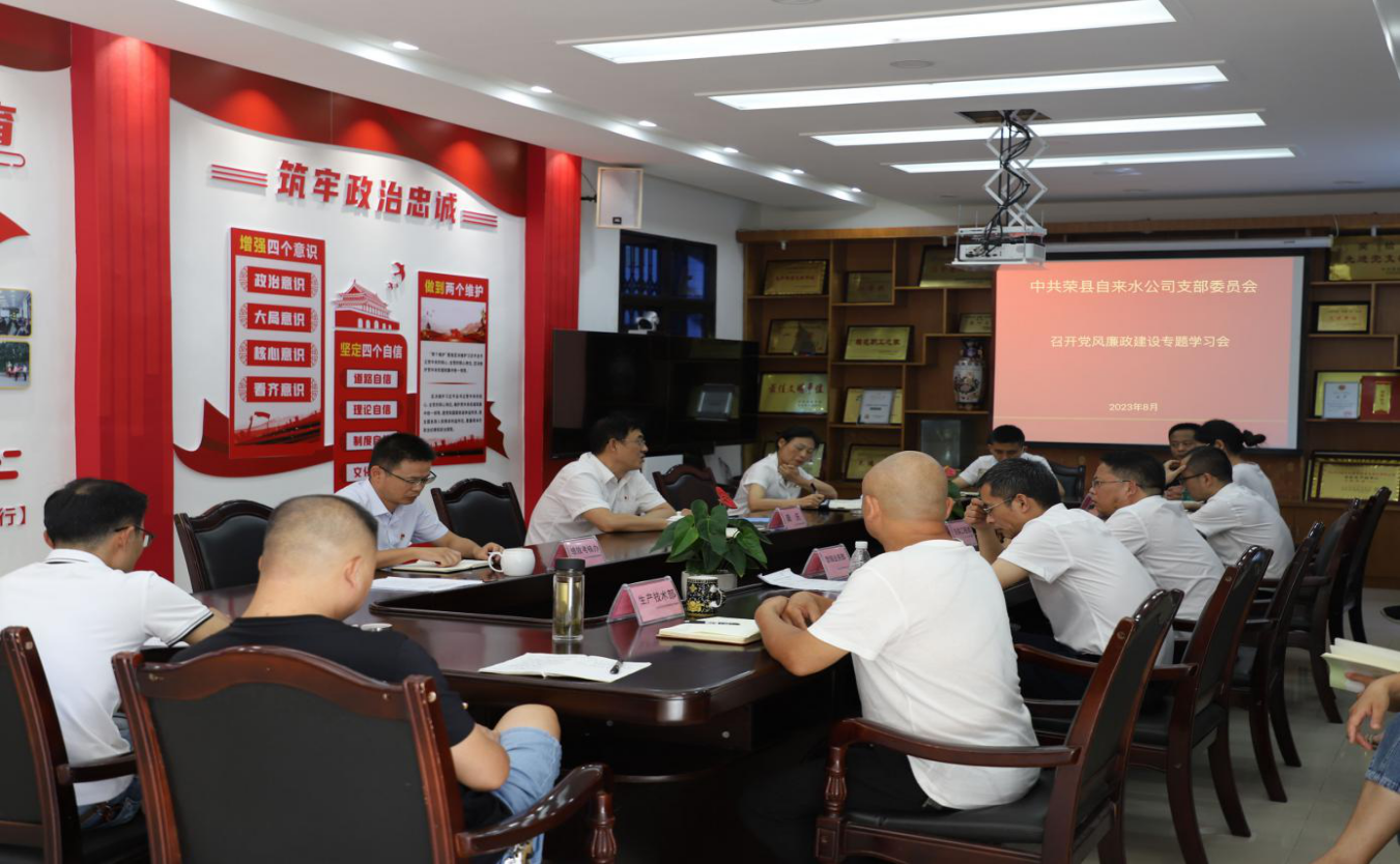 8月25日,為深入推進全面從嚴治黨治企,增強廣大黨員干部防腐拒變能力,榮縣水司黨支部組織召開黨風(fēng)廉政建設(shè)專題學(xué)習(xí)會,黨支部書記、執(zhí)行董事、總經(jīng)理龔慶主持會議,領(lǐng)導(dǎo)班子成員、中層副職以上及黨員代表參加會議。