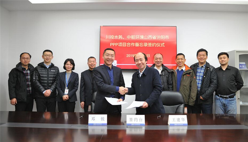 雙方隨后舉行了“汾陽市汾河流域生態(tài)修復(fù)與保護工程PPP項目汾陽市市政基礎(chǔ)設(shè)施建設(shè)工程PPP項目”合作備忘錄的簽約儀式。中船環(huán)境財務(wù)部長李運良、市場部副部長吳冠群、財務(wù)部主管吳雪峰、質(zhì)量部主管李漢平,川投水務(wù)集團總會計師祝瑗、董事會秘書嚴(yán)斯亮、川投船重總經(jīng)理馬銘偉等參加了會談。