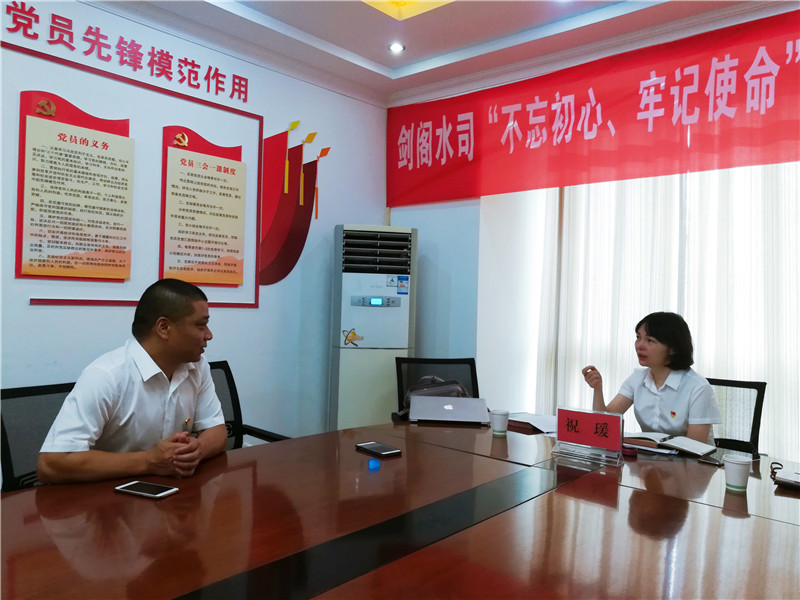 會后,??偱c劍閣水司的黨員同志開展了談心談話,并在劍閣公水司總經(jīng)理何天政、副總經(jīng)理杜剛的陪同下分別到普安和下寺水廠就夏季供水保障工作進行了調(diào)研指導。