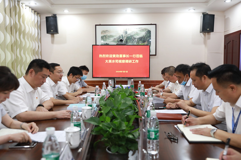 實地調(diào)研結(jié)束后,黃董事長一行在大英水司四樓會議室召開了座談會。會上,大英水司黨支部書記、總經(jīng)理劉松果從公司概況、內(nèi)部管理、存在問題及下步工作打算等方面進行了詳細的工作匯報。聽取匯報后,黃董事長在肯定大英水司經(jīng)營管理及取得成績的同時,對大英水司下階段工作提出五點要求:一是狠抓黨建工作,全力以赴保落實,要把黨建工作融入到生產(chǎn)經(jīng)營管理,突出特色、亮點,推動供水服務(wù)和經(jīng)濟效益不斷得到提升;二是狠抓經(jīng)營工作,全力以赴保發(fā)展,要做好目標任務(wù)分解,全力以赴打贏發(fā)展保衛(wèi)戰(zhàn),實現(xiàn)持續(xù)高質(zhì)量發(fā)展;三是狠抓疫情防控,全力以赴保穩(wěn)定,要繃緊防疫之弦,做好職工教育引導(dǎo),堅持屬地管理原則,堅持報告制度,保持信息通暢,確保平穩(wěn)發(fā)展大局;四是狠抓安全生產(chǎn),全力以赴保平安,要加強安全生產(chǎn)責任制和清單制管理,做好防汛各項工作,做到萬無一失;五是狠抓廉政建設(shè),全力以赴保和諧,要不斷增強廉潔意識,時刻把紀律和規(guī)矩挺在前面,堅決杜絕一切違紀違法行為,構(gòu)建聚精會神搞建設(shè)、一心一意謀發(fā)展的和諧氛圍。