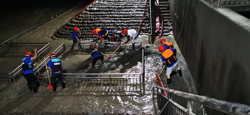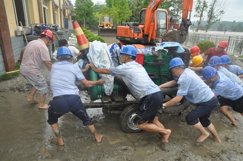 會上,黃董事長通報了所屬中江水司、射洪水司及榮縣氣司等公司受災(zāi)情況及抗洪搶險工作組織開展情況,著重對受災(zāi)較為嚴重的射洪水司龍灘村取水口搶險工作進行了通報。受“8.16”百年一遇的涪江洪峰過境影響(此次洪峰流量最高達22600立方米/秒,比2018年“7.11”洪災(zāi)時最高流量高出1200立方米/秒),射洪水司龍灘村取水口廠區(qū)被過境洪峰及其攜帶的大量泥沙所淹沒,被迫停止取水。為盡快恢復(fù)正常供水,川投水務(wù)黨委書記、董事長黃勁,黨委副書記、總經(jīng)理鄧銳駐守射洪水司現(xiàn)場指揮,帶領(lǐng)由射洪水司精干力量組成的應(yīng)急搶險隊伍歷經(jīng)22小時連續(xù)不間斷奮戰(zhàn),成功恢復(fù)供水,取得抗洪搶險的階段性勝利。