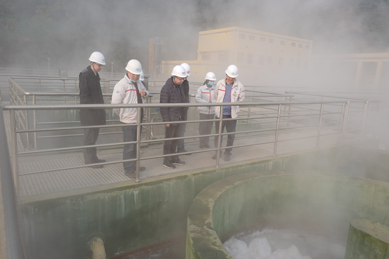 劉凌云董事長一行前往項目現場對廠區(qū)內工程進度、設備運行、年末安全環(huán)保、進出水水質、在線監(jiān)測數據、上游企業(yè)污水流量及正源科技排污管線建設等工作情況進行檢查,并聽取項目現場負責人、EPC總包單位對項目工作情況的匯報。
