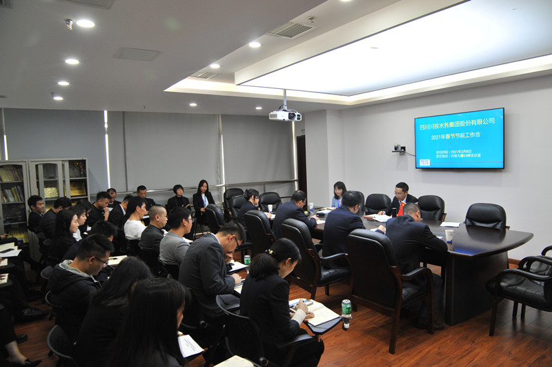 2021年2月8日,在新春佳節(jié)即將到來之際,川投水務(wù)在川投大廈24樓會(huì)議室舉行2021年春節(jié)節(jié)前工作會(huì),對(duì)節(jié)日期間各項(xiàng)工作進(jìn)行安排部署。川投水務(wù)本部全體人員參加會(huì)議。會(huì)議由黨委副書記、總經(jīng)理鄧銳主持。
