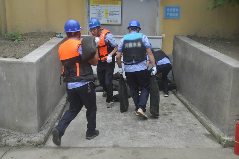 下午2時(shí),分別來(lái)自應(yīng)急救援、管網(wǎng)巡查、信息聯(lián)絡(luò)和供水、安全、后勤保障6個(gè)職能組共80多名參練員工在公司大門口整裝待發(fā)。隨著防汛應(yīng)急演練總指揮劉松果一聲令下,2021年防汛應(yīng)急演練正式開(kāi)始,各演練組迅速進(jìn)入指定位置。演練共有龍灘村取水口、廠內(nèi)高濁度原水處置、管網(wǎng)巡查信息、通訊聯(lián)絡(luò)宣傳解釋四個(gè)展示現(xiàn)場(chǎng),主要模擬涪江發(fā)生特大洪水(洪水超過(guò)2020年警戒線)時(shí),公司采取的應(yīng)急處置措施。參與現(xiàn)場(chǎng)指導(dǎo)的嘉賓前往龍灘村取水口現(xiàn)場(chǎng),在值班室電視機(jī)前全程觀摩公司應(yīng)急演練所有場(chǎng)景:指令下達(dá)和措施落實(shí)以涪江水位和原水濁度的上升為主線,分時(shí)分段逐步展開(kāi),城區(qū)內(nèi)其余三個(gè)現(xiàn)場(chǎng)的實(shí)時(shí)畫(huà)面通過(guò)手機(jī)視頻會(huì)議功能,按照演練先后順序依次切入電視屏幕,四個(gè)展示現(xiàn)場(chǎng)的聯(lián)動(dòng)演練緊張有序。