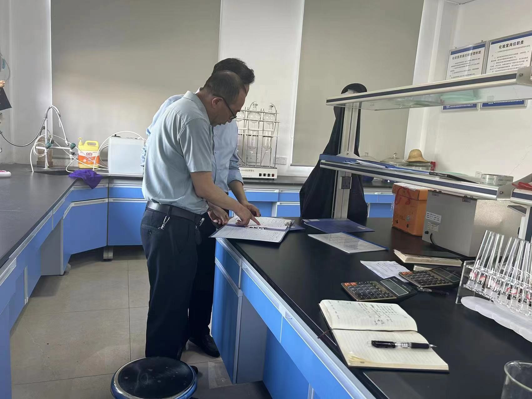 督導(dǎo)組首先到綜合部向值班人員詢問了節(jié)假日期間公司值班值守情況,在中控時(shí)查看了生產(chǎn)運(yùn)行情況,隨后查看了化驗(yàn)室?;奉I(lǐng)用及使用記錄,并詢問了每日檢測項(xiàng)目及檢測結(jié)果,最后實(shí)地查看了膜池化學(xué)清洗情況、剩余污泥脫水情況、生產(chǎn)設(shè)施設(shè)備運(yùn)行等情況。