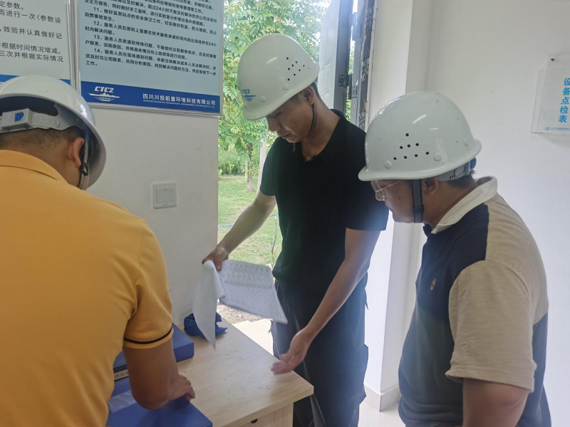 會后,檢查組一行現(xiàn)場查看了公司污水廠主要工藝流程及處理設施運行情況,對廠區(qū)段安寧河道一側(cè)的擋墻,廠區(qū)排洪溝和雨水管道進行了實地查勘。次日上午,檢查組再次對安全生產(chǎn)相關資料臺賬、安全檢查記錄、化學藥品出入庫和登記使用等進行了現(xiàn)場查驗。