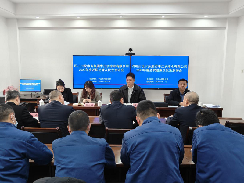2024年1月12日,川投水務集團副總經(jīng)理譚衛(wèi)鵬率黨群工作部部長李至彬一行赴中江公司開展2023年度黨群、紀檢、人力資源、合規(guī)化管理綜合考評,并召開述職述廉及民主測評會。中江公司領導班子、中層管理人員及職工代表共計32人參加考評會議。