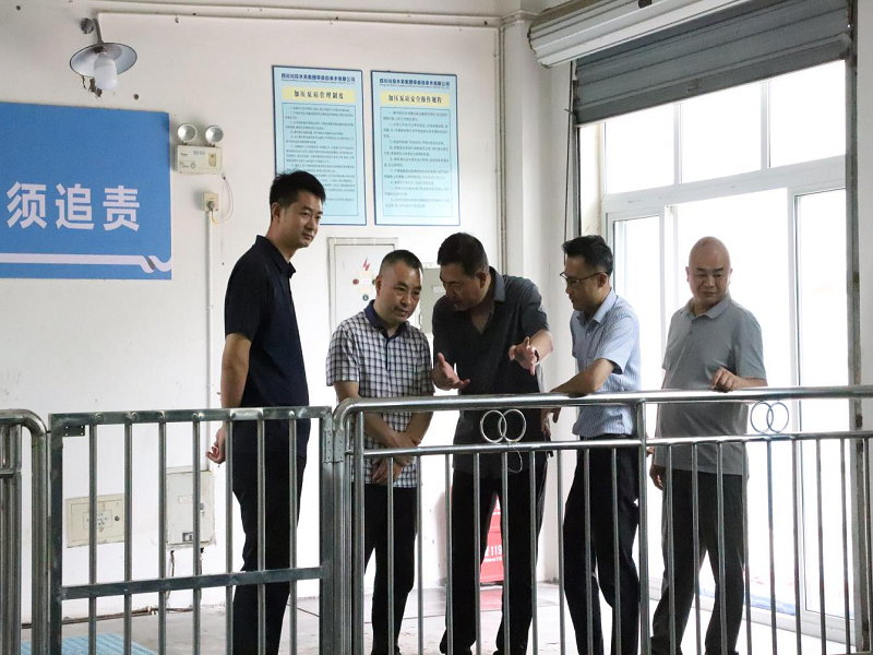 為貫徹全省安全生產(chǎn)調(diào)度會精神,落實(shí)四川發(fā)展安全規(guī)范工作部署,5月15日上午,川投水務(wù)集團(tuán)黨委委員、副總經(jīng)理徐子銳一行赴榮縣公司開展勞動節(jié)后復(fù)工安全專項(xiàng)檢查工作。榮縣公司黨支部書記、董事長、總經(jīng)理龔慶,副總經(jīng)理趙勇及相關(guān)部門負(fù)責(zé)人陪同檢查。