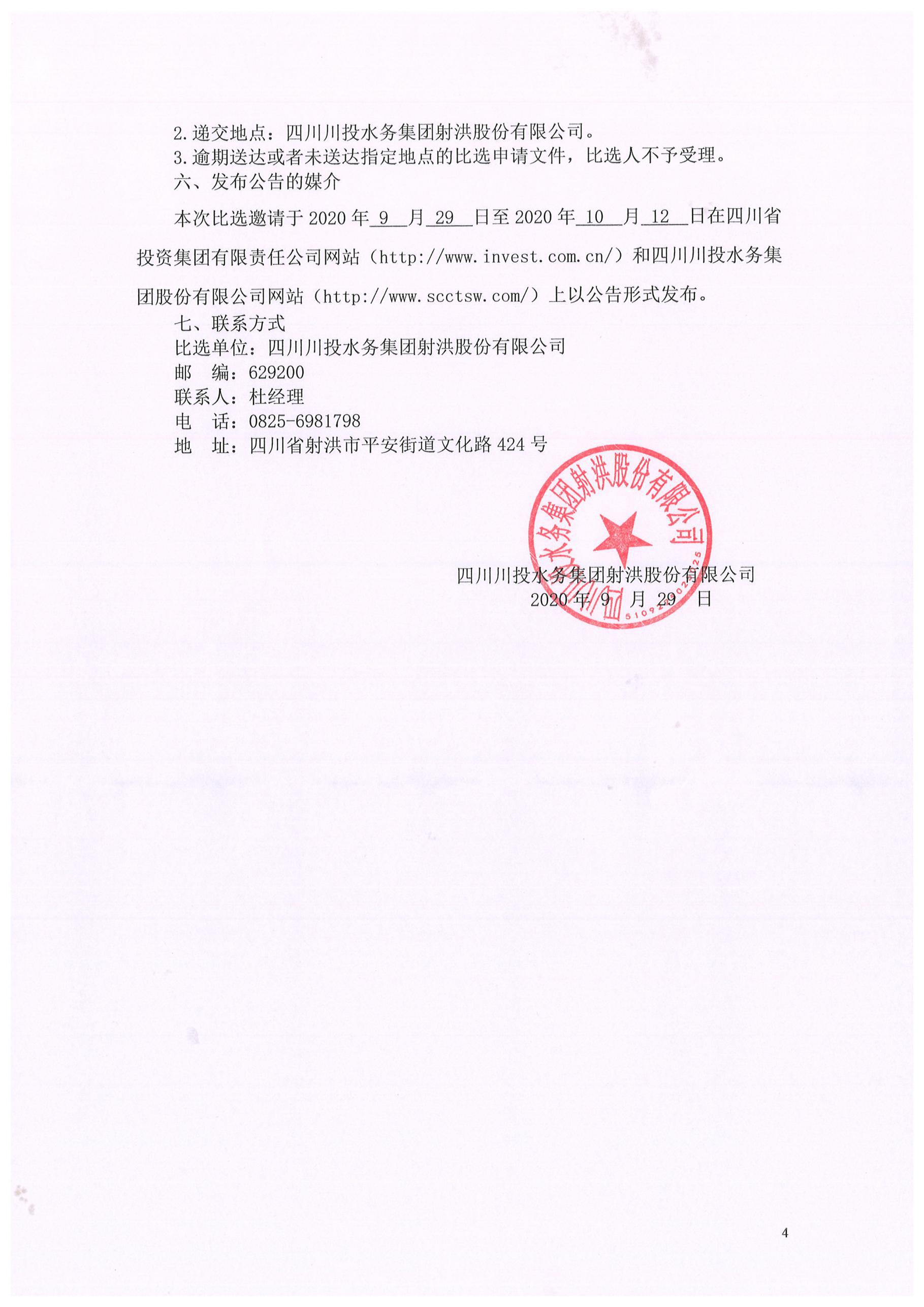 四川川投水務(wù)集團(tuán)股份有限公司射洪市新建自來(lái)水廠可行性研究報(bào)告編制項(xiàng)目比選公告(第二次)