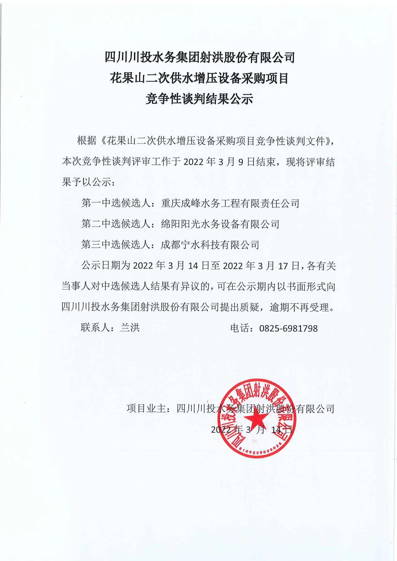 上一條:四川川投水務集團股份有限公司射洪市新建自來水廠可行性研究報告編制項目比選公告(第二次)