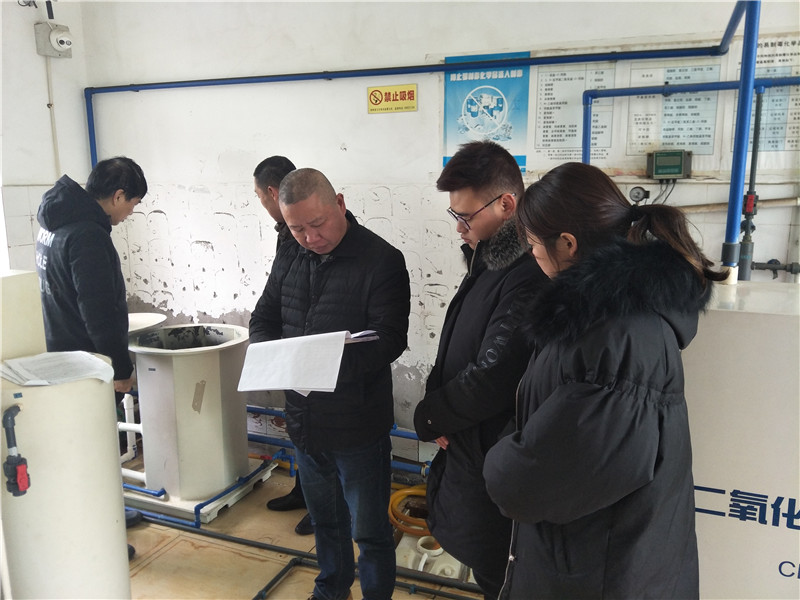 何總一行對普安、下寺水廠和劉家河取水泵房等供水設(shè)備和人員值班情況進行了詳細安全檢查,對各部門“三違”情況進行了督察,查閱了各部門汲取“11.28”事故教訓(xùn)學(xué)習(xí)情況,并重點對生產(chǎn)區(qū)域使用的鹽酸等?;穬Υ姹9芎褪褂糜嬃康裙ぷ?,親自進行了核算。何總要求使用計量記錄要精準(zhǔn)到具體時間段,對未使用與使用中的危化品的監(jiān)控要做到查無遺漏,不容有失,并對配電箱走線進行了規(guī)整,要求便于操作,降低故障隱患,還與制水員工一起將水廠沉淀池進行了清潔消毒,并向員工傳授高效的清淤工作經(jīng)驗。