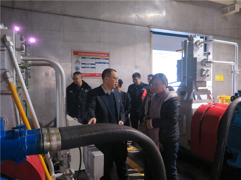 馬經(jīng)理一行首先到宏源CNG加油加氣站檢查安全生產(chǎn)情況,查看了車輛加油加氣現(xiàn)場、CNG壓縮機房、儲氣罐、儲油罐,現(xiàn)場詳細聽取了公司黨委書記、總經(jīng)理、安委會主任李旭東對建設微型消防站和CNG文化走廊的情況介紹。在查看微型消防站時,馬經(jīng)理表示建設微型消防站很有必要,要加強應急演練,確保全員能操作,在關鍵時刻起到效果。隨后馬經(jīng)理一行又到宏源公司天然氣儲配站進行檢查,在檢查了天然氣工藝流程、壓力表檢定情況、儲氣罐后,她對宏源公司安全管理有序可控有效表示肯定。