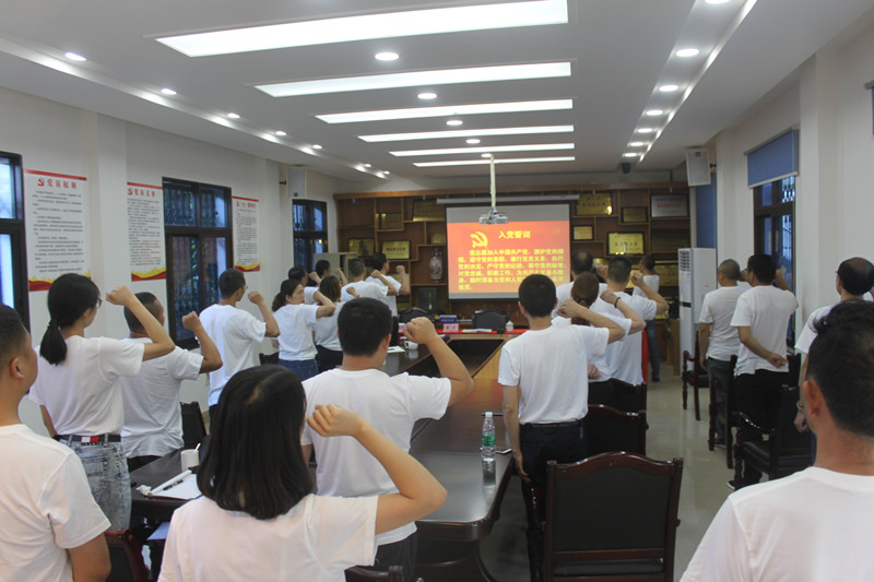 會議在嘹亮雄壯的《國際歌》中拉開帷幕,全體參會人員面對黨旗莊嚴肅穆。會上,兩名被榮縣水務(wù)局黨組評為優(yōu)秀共產(chǎn)黨員的同志結(jié)合“不忘初心、牢記使命”主題教育、中國共產(chǎn)黨成立98周年,給大家分享了工作感悟與個人心得體會。隨后,全體黨員起身立正,面對黨旗重溫入黨誓詞,由公司支部委員、計劃財務(wù)部部長廖征領(lǐng)誓,整個會場莊嚴肅穆。