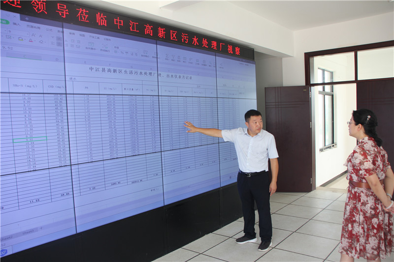 上午11時左右,李縣長一行來到中江縣經(jīng)開區(qū)污水處理廠開展現(xiàn)場督導檢查,并認真聽取了中江水司總經(jīng)理朱禹對經(jīng)開區(qū)污水處理廠近期運行情況的詳細匯報。李縣長在中控室調閱了經(jīng)開區(qū)污水處理廠近一個月內的進、出水水質數(shù)據(jù),認真核查了每日進出水水質的各項數(shù)據(jù)指標。