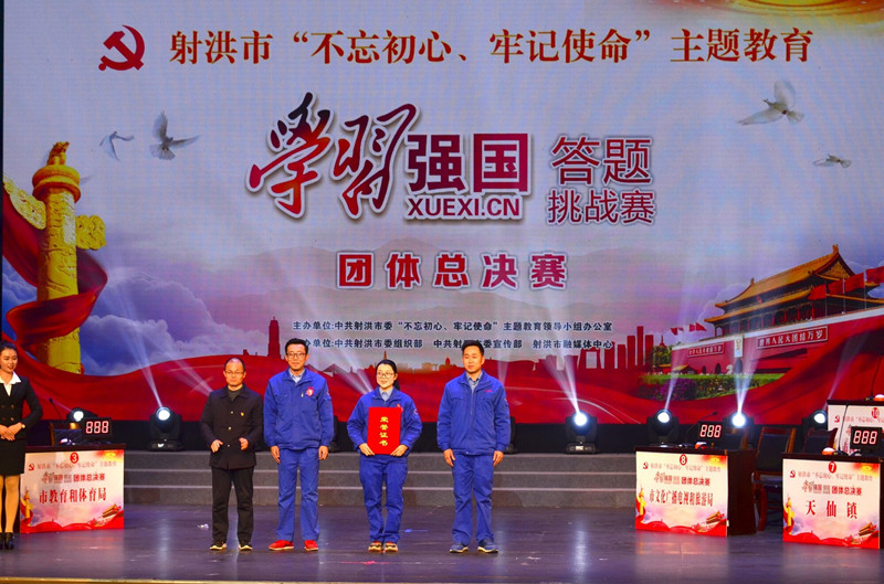 2019年12月31日下午3:30分,由射洪市委“不忘初心、牢記使命”主題教育領(lǐng)導(dǎo)小組辦公室主辦,射洪市委組織部、射洪市委宣傳部、射洪市融媒體中心承辦的射洪市“不忘初心、牢記使命”主題教育“學(xué)習(xí)強(qiáng)國(guó)”答題挑戰(zhàn)賽團(tuán)體總決賽在市文化藝術(shù)中心舉行。遂寧市委宣傳部副部長(zhǎng)、市網(wǎng)信辦主任蔣世興及遂寧市主題教育第三指導(dǎo)組、遂寧市黨員教育中心相關(guān)負(fù)責(zé)人等出席活動(dòng),射洪市各鎮(zhèn)、街道、市直各部門代表參加并觀看了比賽。