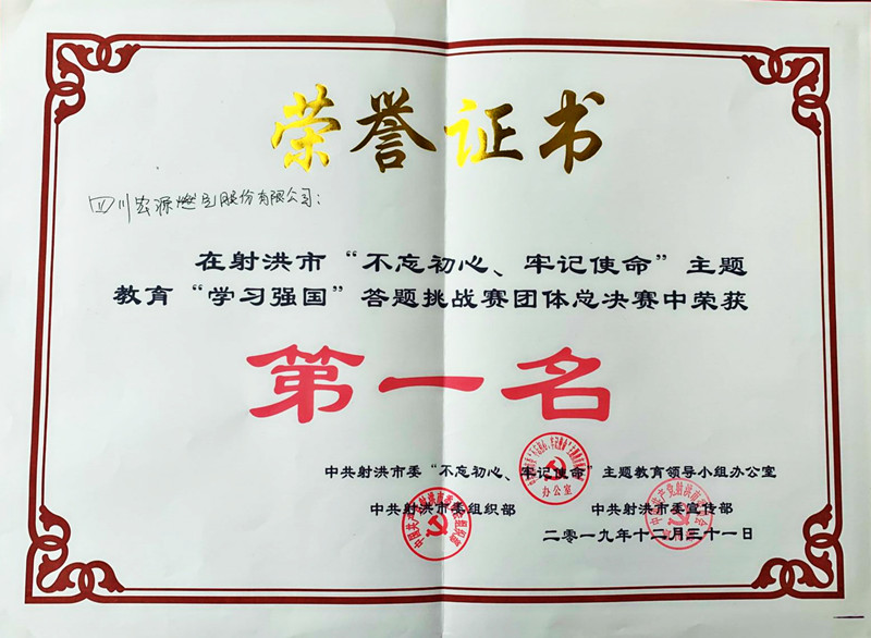 此前,“不忘初心、牢記使命”主題教育“學(xué)習(xí)強(qiáng)國(guó)”答題挑戰(zhàn)個(gè)人決賽和團(tuán)體決賽在射洪市委第三會(huì)議室舉行,來(lái)自全市65支參賽隊(duì)伍參加比賽,其中前10名進(jìn)入團(tuán)體總決賽。本次決賽以“學(xué)習(xí)強(qiáng)國(guó)”APP中的“挑戰(zhàn)答題”為平臺(tái),由馮秋文、黃黎黎、胡仁山組成的宏源公司參賽隊(duì)以30分鐘答對(duì)535道挑戰(zhàn)答題的成績(jī)榮獲團(tuán)體決賽一等獎(jiǎng),并順利進(jìn)入團(tuán)體總決賽。宏源公司馮秋文以30分鐘答對(duì)585道挑戰(zhàn)答題的成績(jī)榮獲個(gè)人決賽一等獎(jiǎng)。