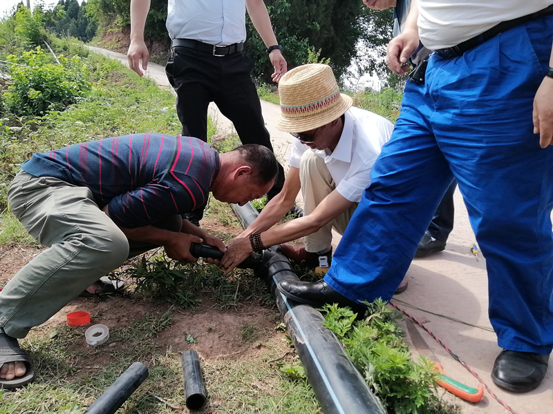 半月前,由于天氣炎熱,降雨少,斗笠村產(chǎn)業(yè)地里的經(jīng)濟(jì)作物枯竭待灌,但因缺乏技術(shù)人員和部分管件物資等,灌溉系統(tǒng)工程久拖未完工,村干部和合作社為用不上水的問題非常著急。大英水司作為該村的扶貧企業(yè),了解到這一情況后,為堅(jiān)決打贏脫貧攻堅(jiān)戰(zhàn),確保貧困戶持續(xù)增收,鞏固斗笠村脫貧成效,在克服本受疫情影響加緊追趕安裝任務(wù)以及夏季供水高峰保供水等問題的前提下,組織公司黨員服務(wù)隊(duì),拉著安裝設(shè)備和提供的零部件,義務(wù)為斗笠村產(chǎn)業(yè)發(fā)展灌溉系統(tǒng)提供技術(shù)、人力、物力支持,解決了貧困村產(chǎn)業(yè)發(fā)展的燃眉之急。