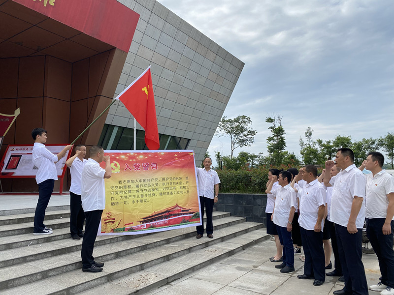 6月28日,名山氣司黨支部開展了以“銘記歷史革命、堅定理想信念”為主題的黨員活動,黨支部書記廖利就中國共產黨入黨誓詞的歷史沿革做了《學黨史、知黨情、做合格黨員》專題黨課,寄語全體黨員要牢記歷史、不辱使命,在今后的工作中發(fā)揚優(yōu)良傳統(tǒng),迎難而上,為名山燃氣事業(yè)持續(xù)、穩(wěn)定發(fā)展而努力奮斗!隨后,公司組織全體黨員干部前往雅安市名山區(qū)百丈關戰(zhàn)役紀念館參觀,探訪長征足跡,找尋紅色印記,重拾入黨初心,在黨支部書記廖利講解中,全體同志深刻了解到紅軍進入名山后特別是百丈關戰(zhàn)役的活動史實。最后,在紅軍百丈關戰(zhàn)役烈士紀念碑下,黨支部書記廖利帶領全體黨員干部重溫入黨誓詞,緬懷悼念革命先烈,表達了不忘初心、牢記使命、忠誠擔當?shù)膱远ㄐ拍詈蜎Q心。