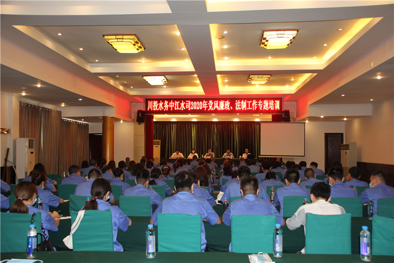 為進一步加強中江水司黨風(fēng)廉政建設(shè)和法制工作,按照川投集團和川投水務(wù)集團工作部署,2020年7月15日下午,中江水司組織召開了2020年黨風(fēng)廉政、法制工作專題培訓(xùn)會。此次培訓(xùn)會邀請了德陽市政法委副書記、德陽市法學(xué)會常務(wù)副會長程正春、四川仁競律師事務(wù)所主任吳明全為大家專題授課。中江縣政法委副書記冉輝、德陽市法學(xué)會秘書科科長曹茗菁陪同出席。公司全體員工、法律顧問共計91人參加培訓(xùn)。會議由黨支部書記、董事長、總經(jīng)理朱禹主持。