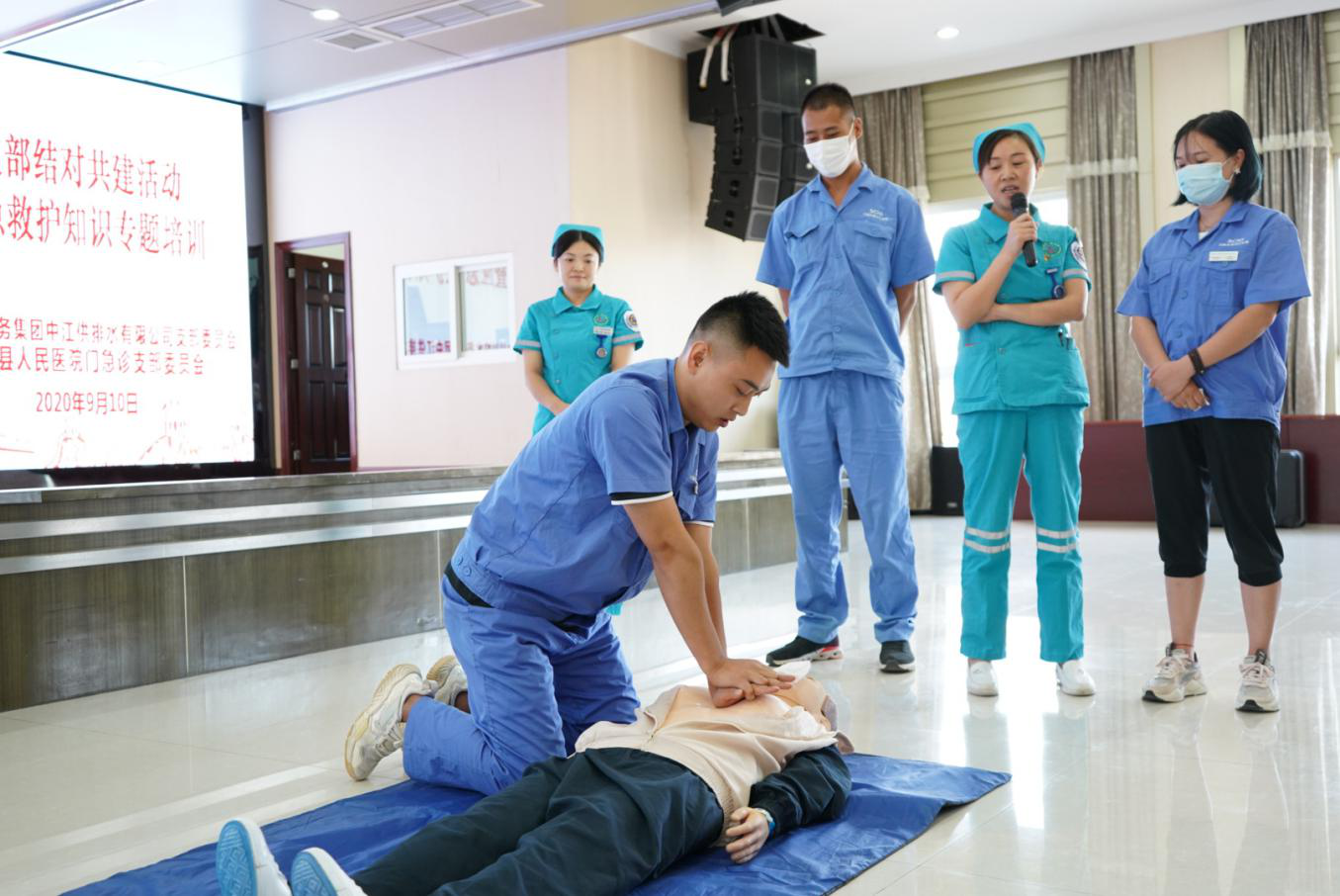 為深入貫徹落實川投集團黨委“雙爭雙創(chuàng)”和川投水務集團黨委“雙爭雙創(chuàng)雙促”活動要求,以及貫徹執(zhí)行“安全第一,預防為主”的安全指導方針,通過急救知識培訓,提高職工應急救護能力。9月10日,中江水司黨支部與中江縣人民醫(yī)院門急診支部委員會開展結對共建活動,聯(lián)手為中江水司100余名員工進行了應急救護專題培訓。本次活動由中江水司常務副總經理秦榮主持。