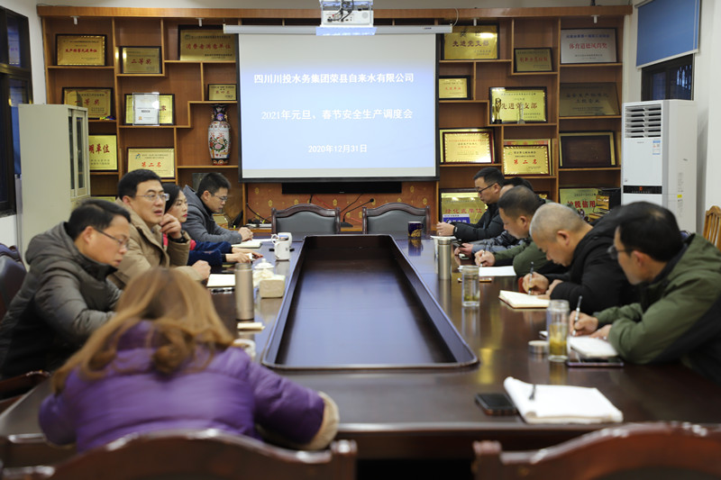 元旦將近,為有效防范和遏制安全生產(chǎn)事故發(fā)生,確??h城區(qū)的安全穩(wěn)定供水,12月31日上午,川投水務榮縣水司在會議室召開2021年元旦、春節(jié)安全生產(chǎn)調(diào)度會。經(jīng)營班子成員,生產(chǎn)、工程及綜合后勤等部門管理人員共計11人參會,會議由執(zhí)行董事、總經(jīng)理龔慶主持。