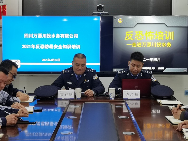 4月23日,為切實(shí)加強(qiáng)反恐工作,提高公司員工的防范意識(shí)和處置突發(fā)事件能力,萬(wàn)源水司特邀萬(wàn)源市公安局政治安全保衛(wèi)大隊(duì)大隊(duì)長(zhǎng)雷祥剛、副大隊(duì)長(zhǎng)饒崧耀對(duì)公司員工進(jìn)行反恐安全教育培訓(xùn)。公司經(jīng)營(yíng)班子、中層干部、關(guān)鍵崗位的全體員工參加了此次培訓(xùn)及演練。