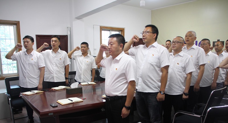 “我志愿加入中國共產(chǎn)黨......永不叛黨?!毕挛?點(diǎn)40分,慶“七一”暨支部黨員大會在黨員們鏗鏘有力的宣誓中拉開了序幕,全體黨員舉起右手,莊嚴(yán)宣誓,錚錚誓言表達(dá)著全體黨員堅(jiān)定不移的政治信念和矢志奮斗的堅(jiān)強(qiáng)決心,宣誓著聽黨話、跟黨走的堅(jiān)定信心。