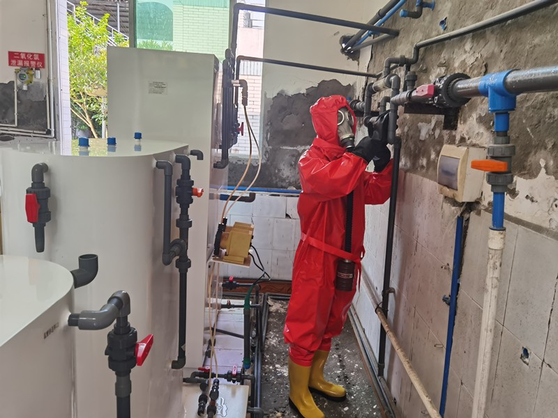 此次演練真實模擬了二氧化氯發(fā)生器泄漏事故,應急救援小組結合突發(fā)事件應急處置預案,從實戰(zhàn)角度出發(fā),圍繞發(fā)現(xiàn)事故、逐級上報、預案啟動、應急處置、緊急搶修等方面進行。