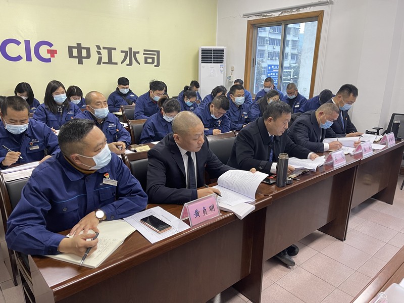 2022年1月12日,川投水務副總經(jīng)理劉松果率綜合事務管理部艾興宇、戰(zhàn)略經(jīng)營管理部曹育武一行,赴中江水司開展2021年度綜合考評、安全環(huán)保檢查和節(jié)前慰問工作。中江水司經(jīng)營班子成員、中層管理人員及職工代表,共計31人參加了考評會議。