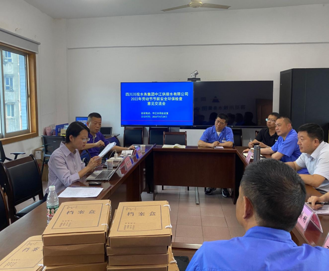 4月28日、29日,四川省生態(tài)環(huán)保集團(tuán)安全環(huán)保部安全主管彭嬌嬌、川投水務(wù)集團(tuán)戰(zhàn)略經(jīng)營(yíng)管理部曹育武赴中江水司檢查調(diào)研節(jié)前安全環(huán)保工作。中江水司黨支部書(shū)記、董事長(zhǎng)、總經(jīng)理朱禹,常務(wù)副總經(jīng)理秦榮等相關(guān)負(fù)責(zé)人陪同調(diào)研。