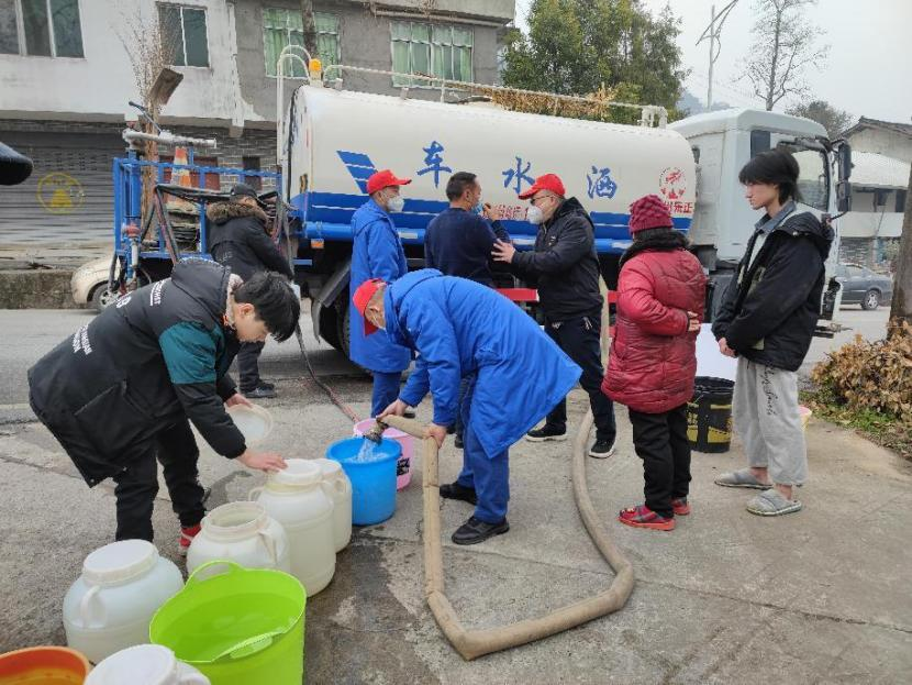 經(jīng)過多方溝通,1月5日上午,在縣住建局的協(xié)調(diào)下,公司借用園林所灑水車正式從下寺向普安送水。“大家快出來接水!”當聽到工作人員的呼聲后,居民們紛紛從家里出來接水,有的拎著水桶,有的拖著水管,有的扛著抽水泵.....看見漸漸灌滿的蓄水池和水桶,居民們臉上洋溢著滿意的笑容,大家紛紛說到:“感謝川投水務為我們送來飲用水,這是實實在在替我們老百姓辦實事??!”