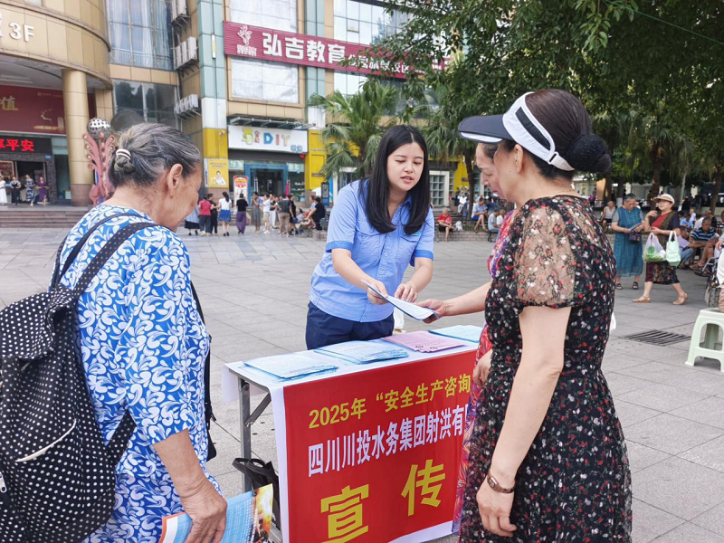 2025年6月是第24個(gè)全國(guó)“安全生產(chǎn)月”,主題是“人人講安全、個(gè)個(gè)會(huì)應(yīng)急——查找身邊安全隱患”。6月16日為全國(guó)“安全宣傳咨詢?nèi)铡保?dāng)日上午,川投水務(wù)射洪公司組織員工前往射洪市新世紀(jì)廣場(chǎng),開(kāi)展“6·16安全宣傳咨詢?nèi)铡敝黝}活動(dòng)。