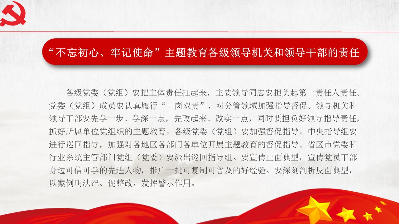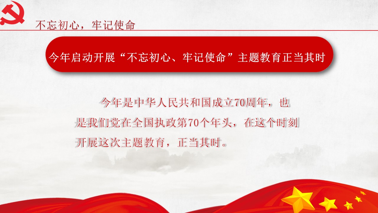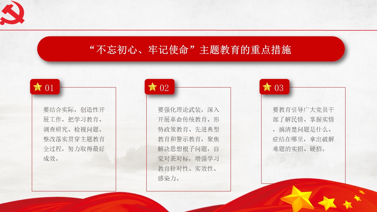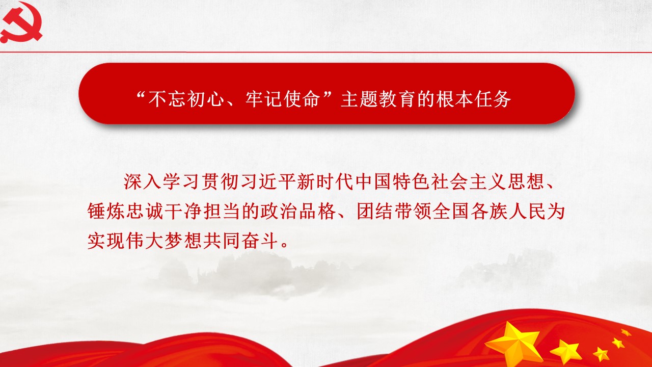5月31日“不忘初心、牢記使命”主題教育工作會議31日在北京召開。中共中央總書記、國家主席、中央軍委主席習(xí)近平出席會議并發(fā)表重要講話。他強調(diào),為中國人民謀幸福,為中華民族謀復(fù)興,是中國共產(chǎn)黨人的初心和使命,是激勵一代代中國共產(chǎn)黨人前赴后繼、英勇奮斗的根本動力。開展“不忘初心、牢記使命”主題教育,要牢牢把握守初心、擔(dān)使命,找差距、抓落實的總要求,牢牢把握深入學(xué)習(xí)貫徹新時代中國特色社會主義思想、...