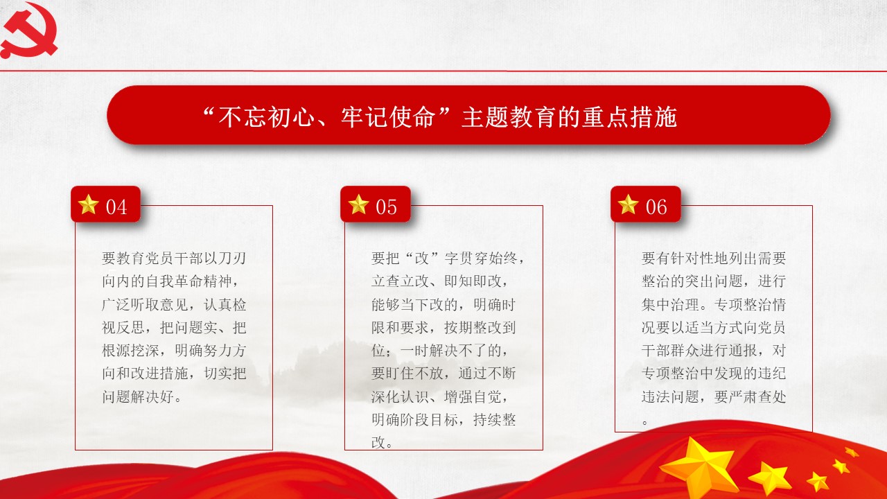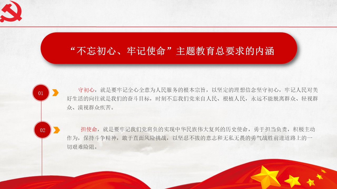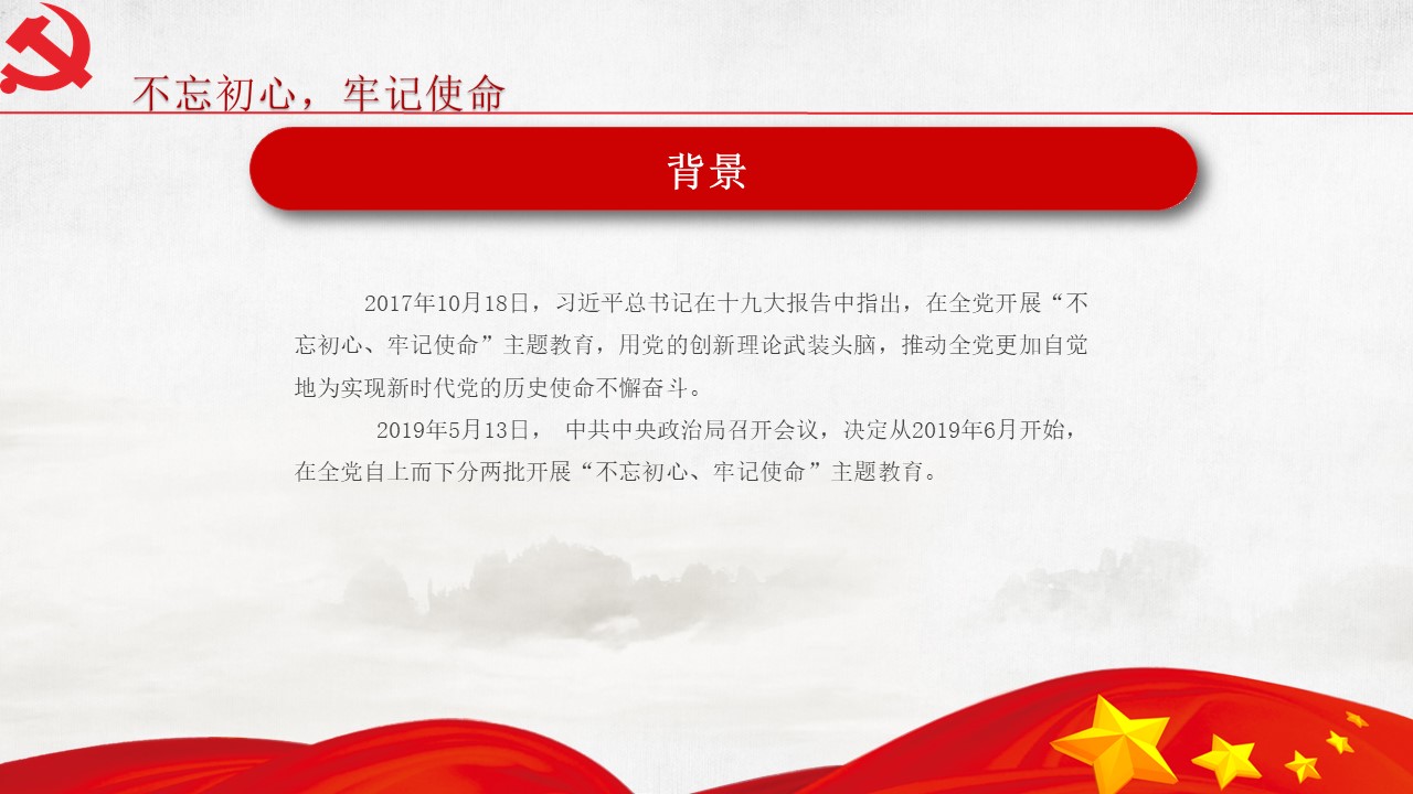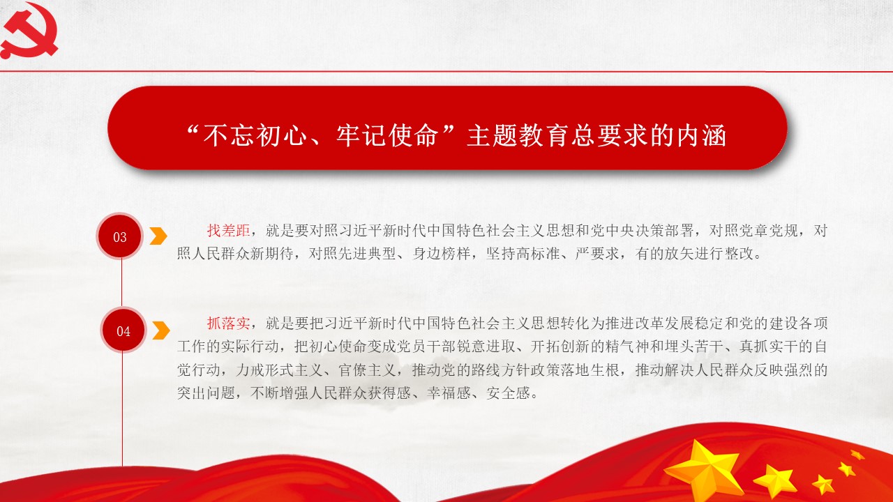 5月31日“不忘初心、牢記使命”主題教育工作會議31日在北京召開。中共中央總書記、國家主席、中央軍委主席習(xí)近平出席會議并發(fā)表重要講話。他強調(diào),為中國人民謀幸福,為中華民族謀復(fù)興,是中國共產(chǎn)黨人的初心和使命,是激勵一代代中國共產(chǎn)黨人前赴后繼、英勇奮斗的根本動力。開展“不忘初心、牢記使命”主題教育,要牢牢把握守初心、擔(dān)使命,找差距、抓落實的總要求,牢牢把握深入學(xué)習(xí)貫徹新時代中國特色社會主義思想、...
